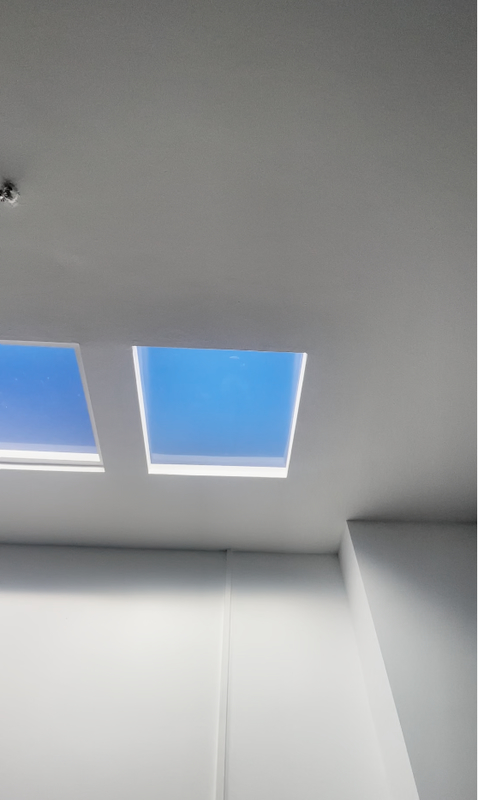 1. A Claraboia LED Artificial simula a luz natural do dia, trazendo uma sensação calma e espaçosa para ambientes internos.